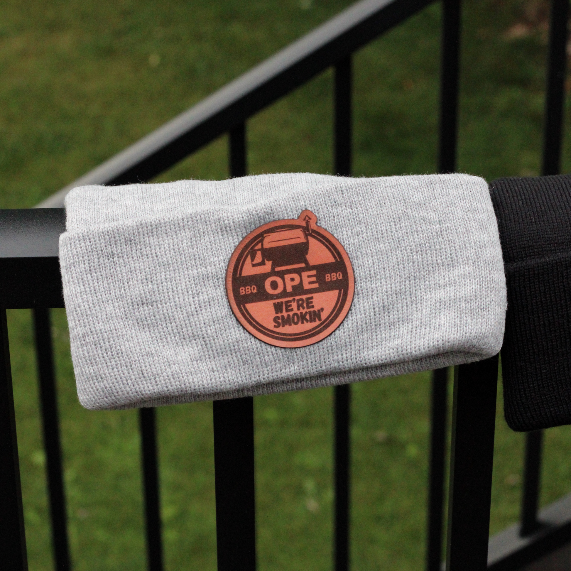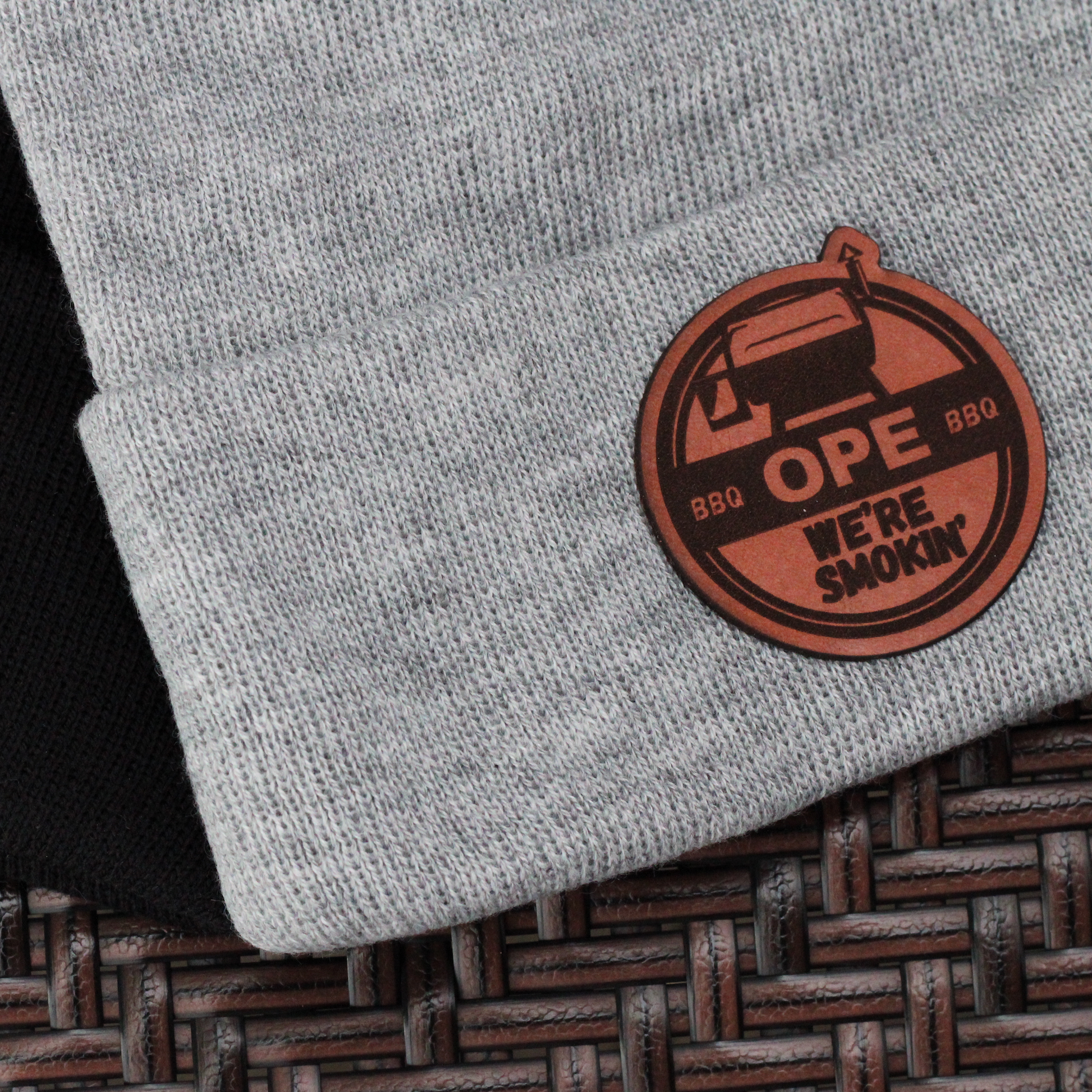 Grey, classic, and just the right touch of Midwest. Featuring our “Ope We’re Smokin’” leather patch logo, this beanie keeps you warm while you keep the smoker or grill rollin’.